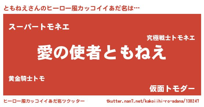 | ヘコむあだ名 | 『ともにゅー』『ともぷりん』 |
