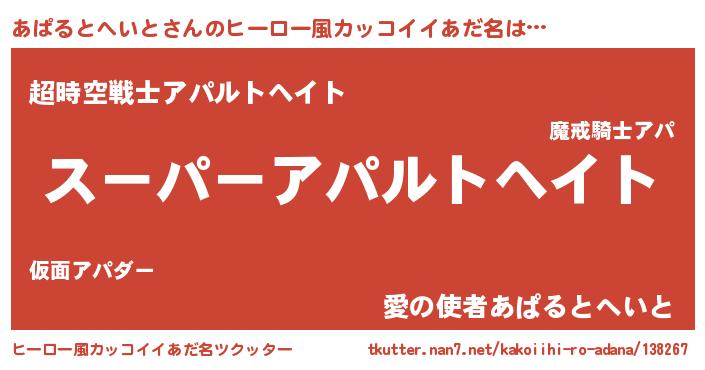 | 男性向けラノベタイトル風あだ名 | 『はたらくあぱるとへいとさま!』 |