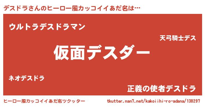 | 男性向けラノベタイトル風あだ名 | 『魔弾の王とデスドラ』 |