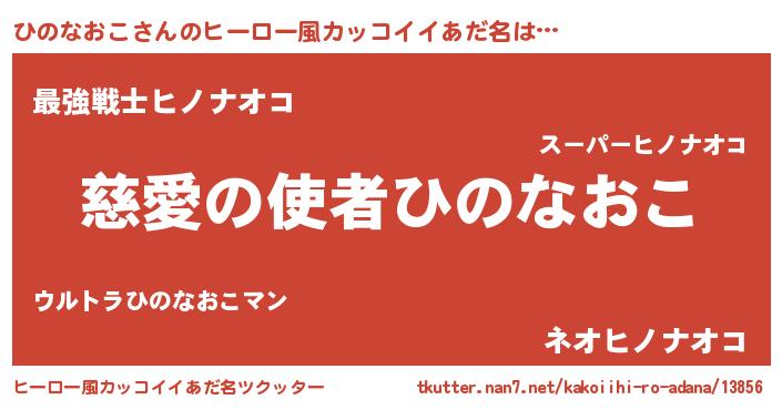 | 男性向けラノベタイトル風あだ名 | 『ひのなおこに滅ぼされるだけの簡単なお仕事です』 |