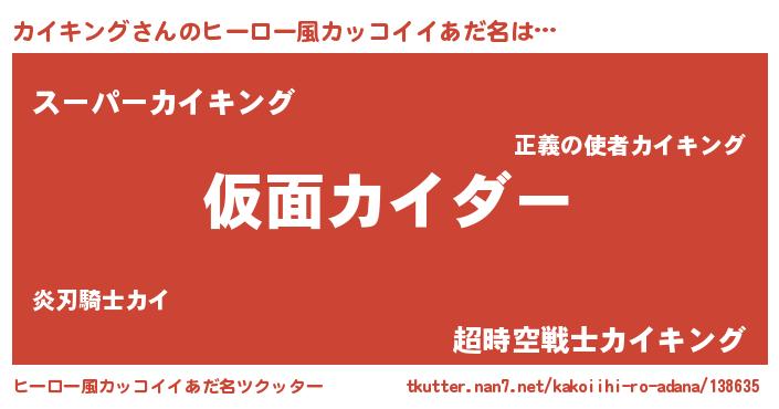 | 胡散臭い通販商品みたいなあだ名 | 『あなたにだけ特別に提供する世界で10本だけ現存している希少なブランデー…その名も「カイキング」』 |