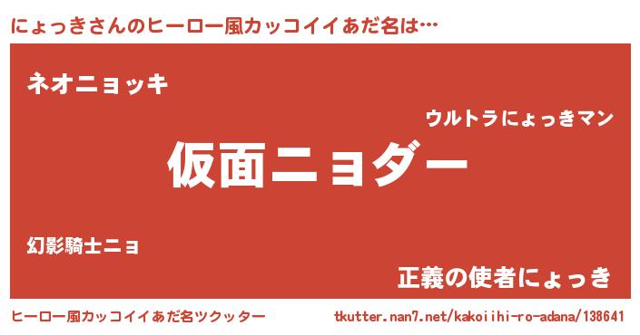 | 男性向けラノベタイトル風あだ名 | 『この素晴らしい世界ににょっきを!』 |