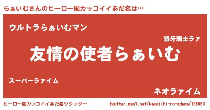 | ヘコむあだ名 | 『豆乳』『らぁいむ(震え声)』 |