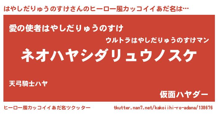 | 意味不明あだ名 | 『永久保存はやしだりゅうのすけ』 |