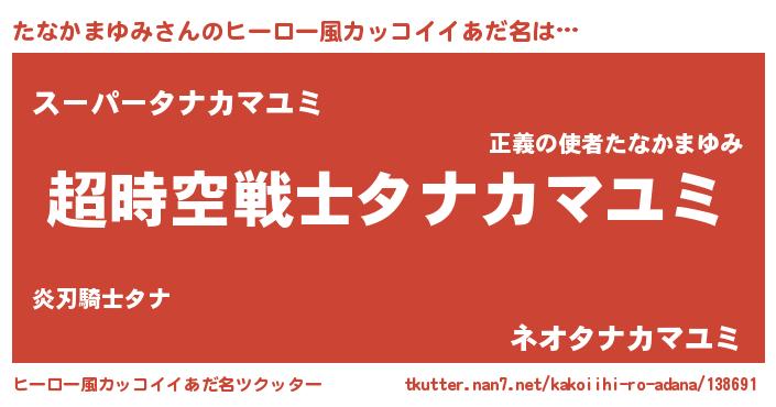 | ヘコむあだ名 | 『たなっふぃ~』『たなかまゆみ(震え声)』 |