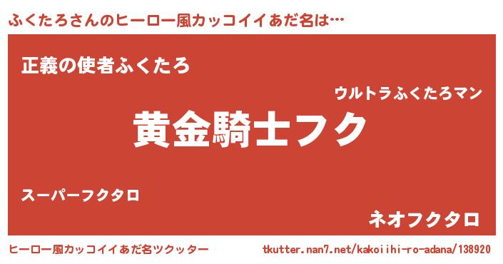 | 男性向けラノベタイトル風あだ名 | 『ダンジョンにふくたろを求めるのは間違っているだろうか』 |