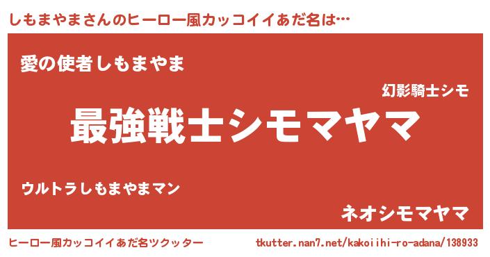 | 男性向けラノベタイトル風あだ名 | 『Re:しもまやまから始める異世界生活』 |