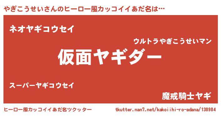 | 男性向けラノベタイトル風あだ名 | 『この素晴らしい世界にやぎこうせいを!』 |