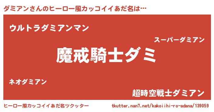 | 男性向けラノベタイトル風あだ名 | 『ダンジョンにダミアンを求めるのは間違っているだろうか』 |