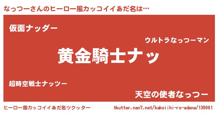 | 胡散臭い通販商品みたいなあだ名 | 『信頼と実績のペンダント…その名も「なっつー」』 |