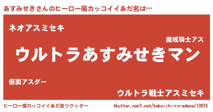 | ファンタジー風あだ名 | 『エターナルアスミセキー』『ゼアストゥ』 |