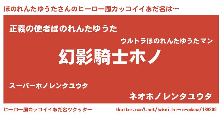 | 男性向けラノベタイトル風あだ名 | 『ほのれんたゆうたの嫁は女の子じゃないと思った?』 |