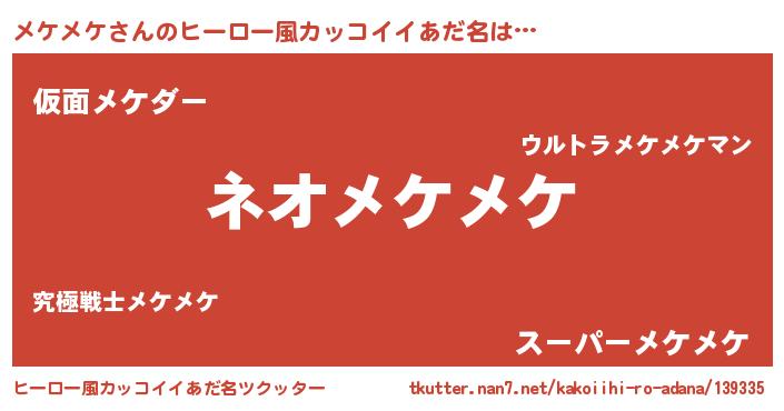 | 男性向けラノベタイトル風あだ名 | 『メケメケという概念が存在しない退屈な世界 』 |
