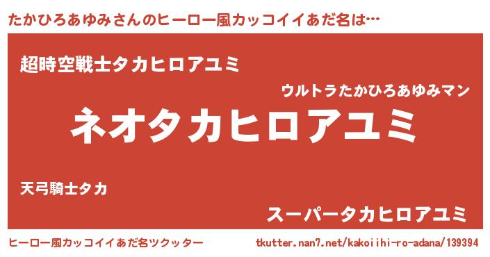 | 男性向けラノベタイトル風あだ名 | 『誰もが恐れるあのたかひろあゆみが、ぼくの専属メイドになるようです。』 |
