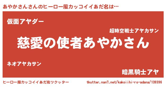 | ヘコむあだ名 | 『あやお』『あやかさん(苦笑)』 |