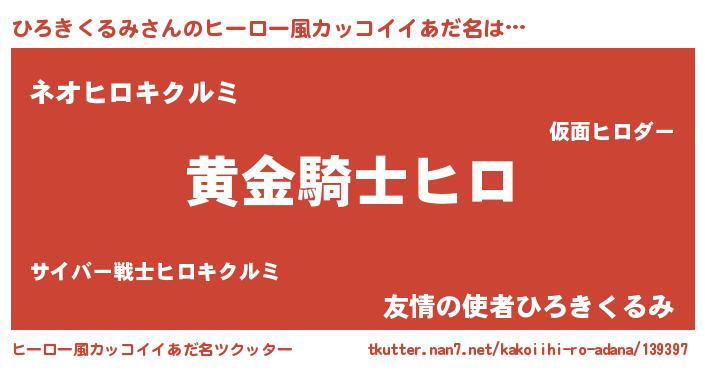 | 女子向けラノベタイトル風あだ名 | 『ひろきくるみは平凡を望む』 |