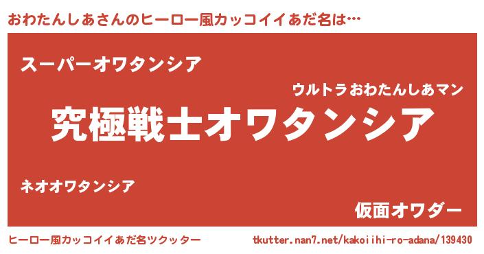 | 意味不明あだ名 | 『自称おわたんしあ』 |