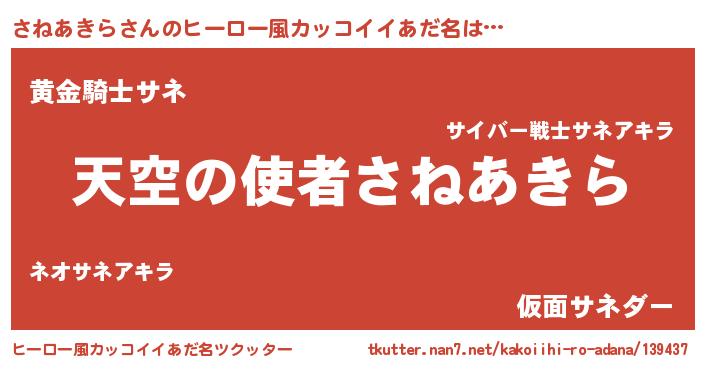 | 男性向けラノベタイトル風あだ名 | 『ノーゲーム・ノーサネアキラ』 |