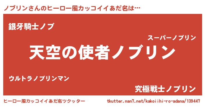 | 女子向けラノベタイトル風あだ名 | 『死神ノブリンの再婚』 |
