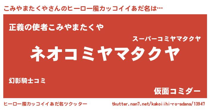 | 男性向けラノベタイトル風あだ名 | 『こみやまたくやという概念が存在しない退屈な世界 』 |