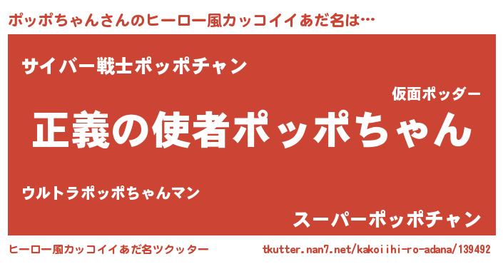 | 男性向けラノベタイトル風あだ名 | 『おまえをオタクにしてやるから、俺をポッポちゃんにしてくれ! 』 |