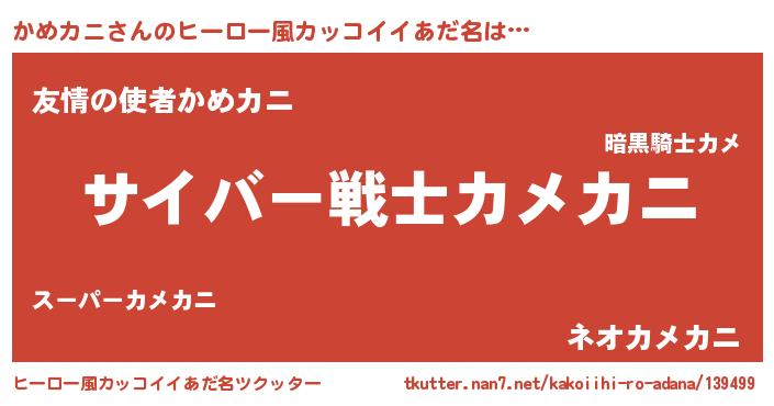 | 意味不明あだ名 | 『自称かめカニ』『永久保存かめカニ』 |