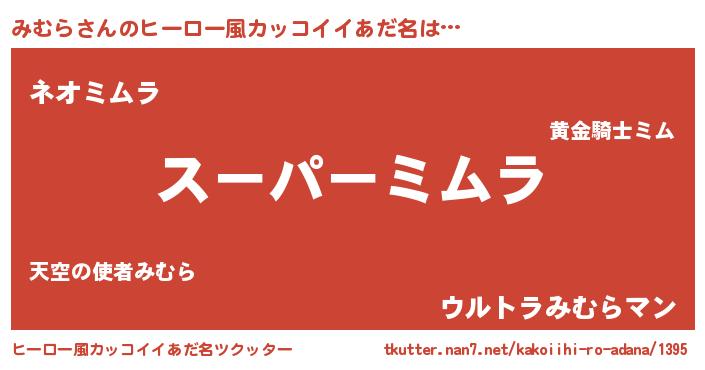 | 男性向けラノベタイトル風あだ名 | 『みむら~年齢イコール彼女いない歴の魔法使い~』 |