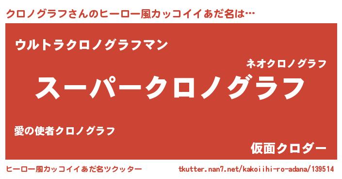 | 男性向けラノベタイトル風あだ名 | 『うちのクロノグラフが世界を掌握している!』 |