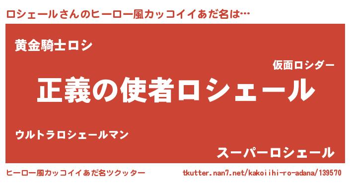 | 男性向けラノベタイトル風あだ名 | 『おまえをオタクにしてやるから、俺をロシェールにしてくれ! 』 |