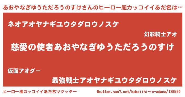 | ヘコむあだ名 | 『あおやなぎゆうただろうのすけ(爆)』 |