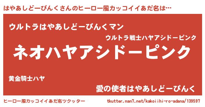 | 意味不明あだ名 | 『永久保存はやあしどーぴんく』 |