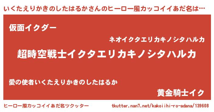 | 女子向けラノベタイトル風あだ名 | 『いくたえりかきのしたはるかなんてお断りですっ。』 |