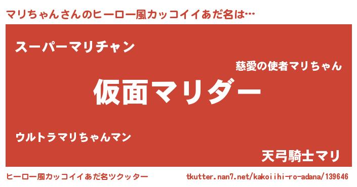 | 男性向けラノベタイトル風あだ名 | 『この素晴らしい世界にマリちゃんを!』 |