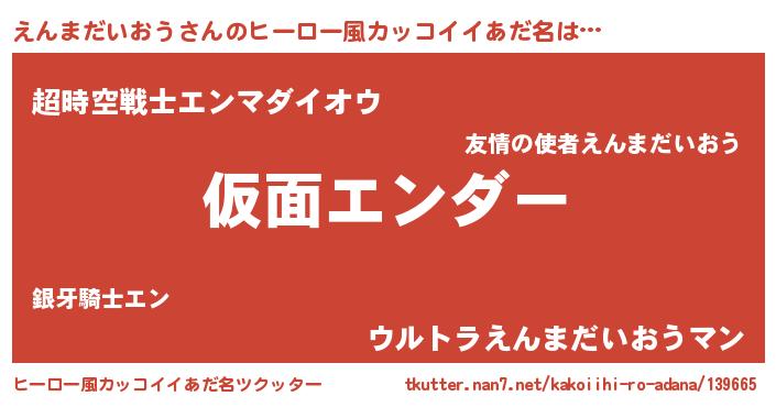 | 意味不明あだ名 | 『住所不定無職えんまだいおう(8歳)』 |