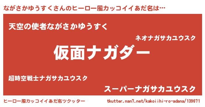 | 男性向けラノベタイトル風あだ名 | 『この素晴らしい世界にながさかゆうすくを!』 |