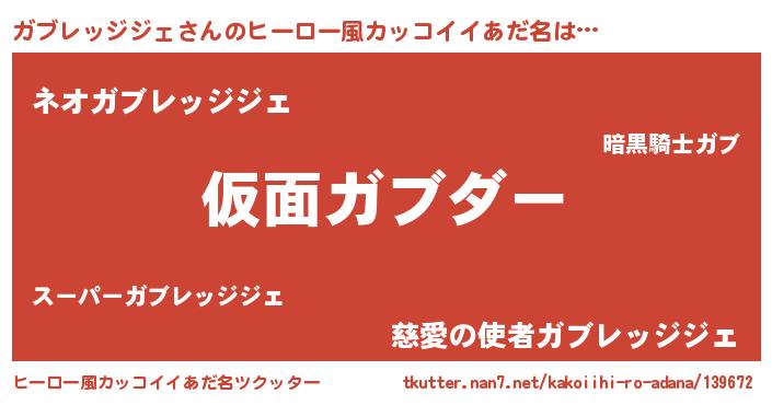 | 男性向けラノベタイトル風あだ名 | 『この素晴らしい世界にガブレッジジェを!』 |