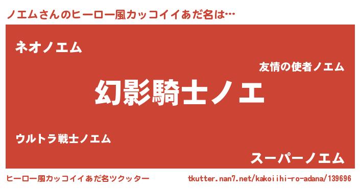 | 男性向けラノベタイトル風あだ名 | 『ノエムの嫁は女の子じゃないと思った?』 |