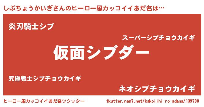 | 女子向けラノベタイトル風あだ名 | 『しぶちょうかいぎが死なない童話 林檎のしぶちょうかいぎの診療簿』 |