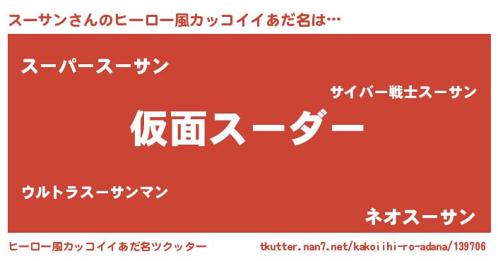 | 意味不明あだ名 | 『住所不定無職スーサン(6歳)』 |