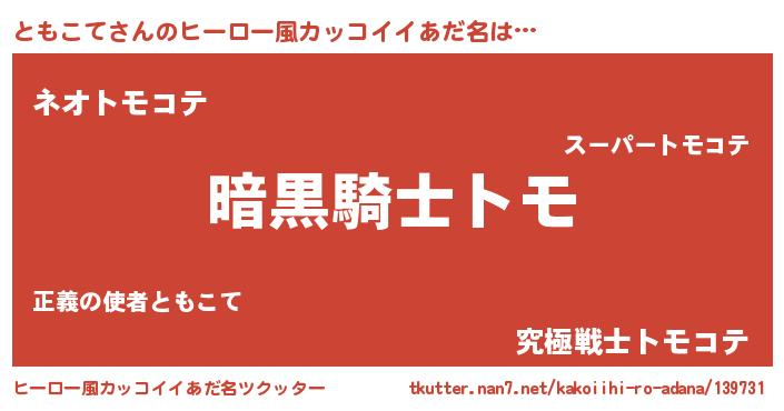 | 女子向けラノベタイトル風あだ名 | 『ともこては平凡を望む』 |