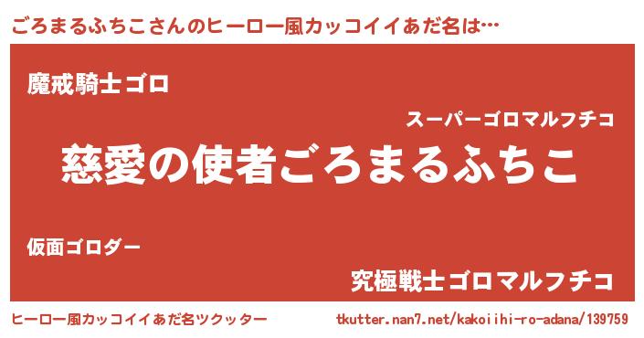 | 男性向けラノベタイトル風あだ名 | 『ノーゲーム・ノーゴロマルフチコ』 |