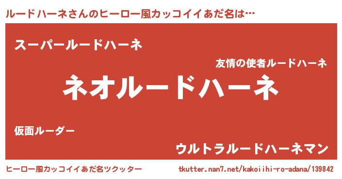 | 男性向けラノベタイトル風あだ名 | 『転生したらルードハーネだった件』 |