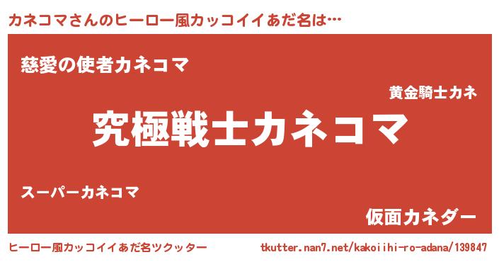 | 男性向けラノベタイトル風あだ名 | 『Re:カネコマから始める異世界生活』 |