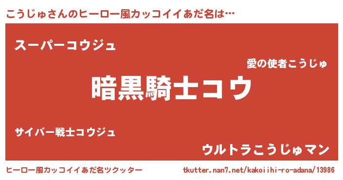 | 胡散臭い通販商品みたいなあだ名 | 『信頼と実績のサプリメント…その名も「こうじゅ」』 |