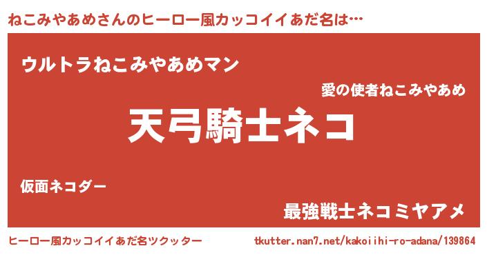 | 男性向けラノベタイトル風あだ名 | 『ねこみやあめの嫁は女の子じゃないと思った?』 |