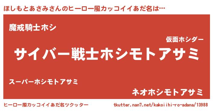 | ポケモン風あだ名 | 『ホシセウス』『ヒホシモトアサミ』 |