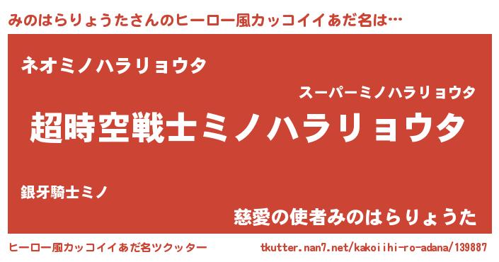 | 女子向けラノベタイトル風あだ名 | 『みのはらりょうたなんてお断りですっ。』 |