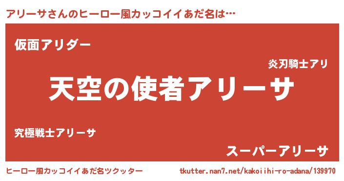 | 女子向けラノベタイトル風あだ名 | 『死神アリーサの再婚』 |