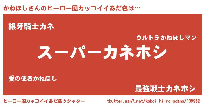 | 意味不明あだ名 | 『エリンギ科かねほし属』『自称かねほし』 |
