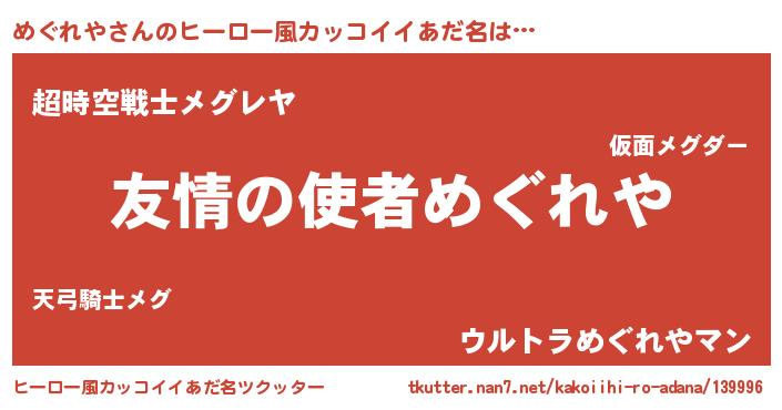 | ヘコむあだ名 | 『牛乳』『めぐを』『めぐれや(笑)』 |